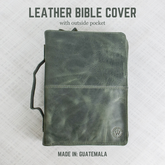 Gray Full Grain, Natural Leather Bible Cover / Case with Zipper