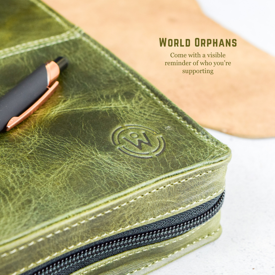 Look no further than our exquisite full-grain leather Bible cover for an unbeatable blend of style and protection. Imagine unboxing this beauty and being greeted by the subtle, natural scent of premium leather. As you run your fingers over the butter-soft surface, take a moment to appreciate how your purchase is making a meaningful difference. This isn't just a Bible case; it's a lifeline for at-risk families.