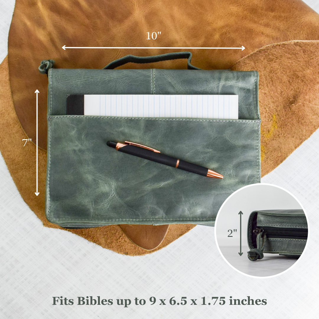 - This handcrafted leather Bible cover will fit a Bible up to 9 x 6.5 x 1.75 inches.