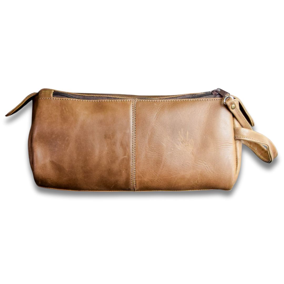 - It makes a statement. This leather toiletry kit screams quality. From the handstitched design to the full grain cowhide leather, it steadfastly represents the time honored tradition of gentlemen's bags.