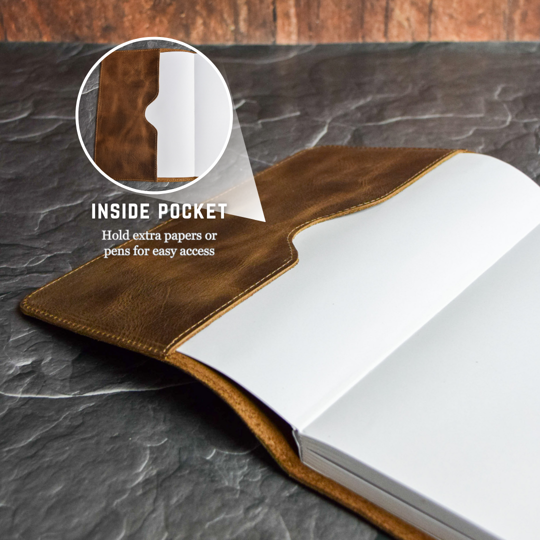 Leather journal covers last for years! Simply purchase a new insert for journaling, your diary, or sketching, and use the leather bound journal for your entire life.